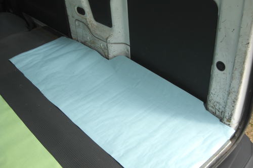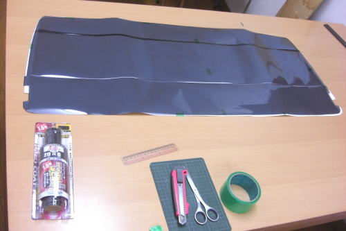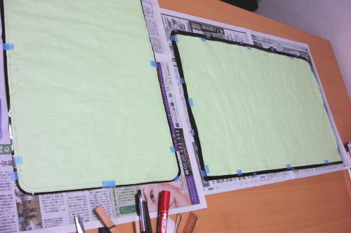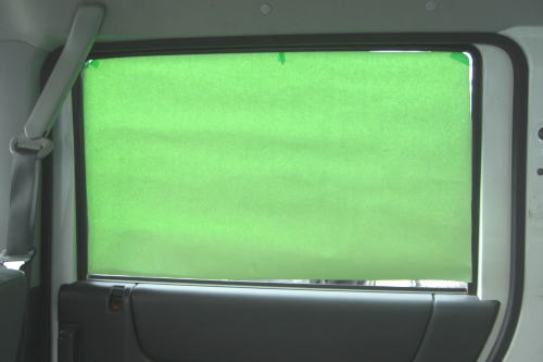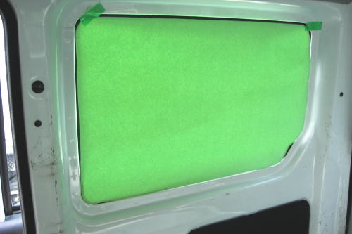 窓に型紙を当てて鉛筆でなぞります。鉛筆で描いた型紙を下においてハサミで切ります |